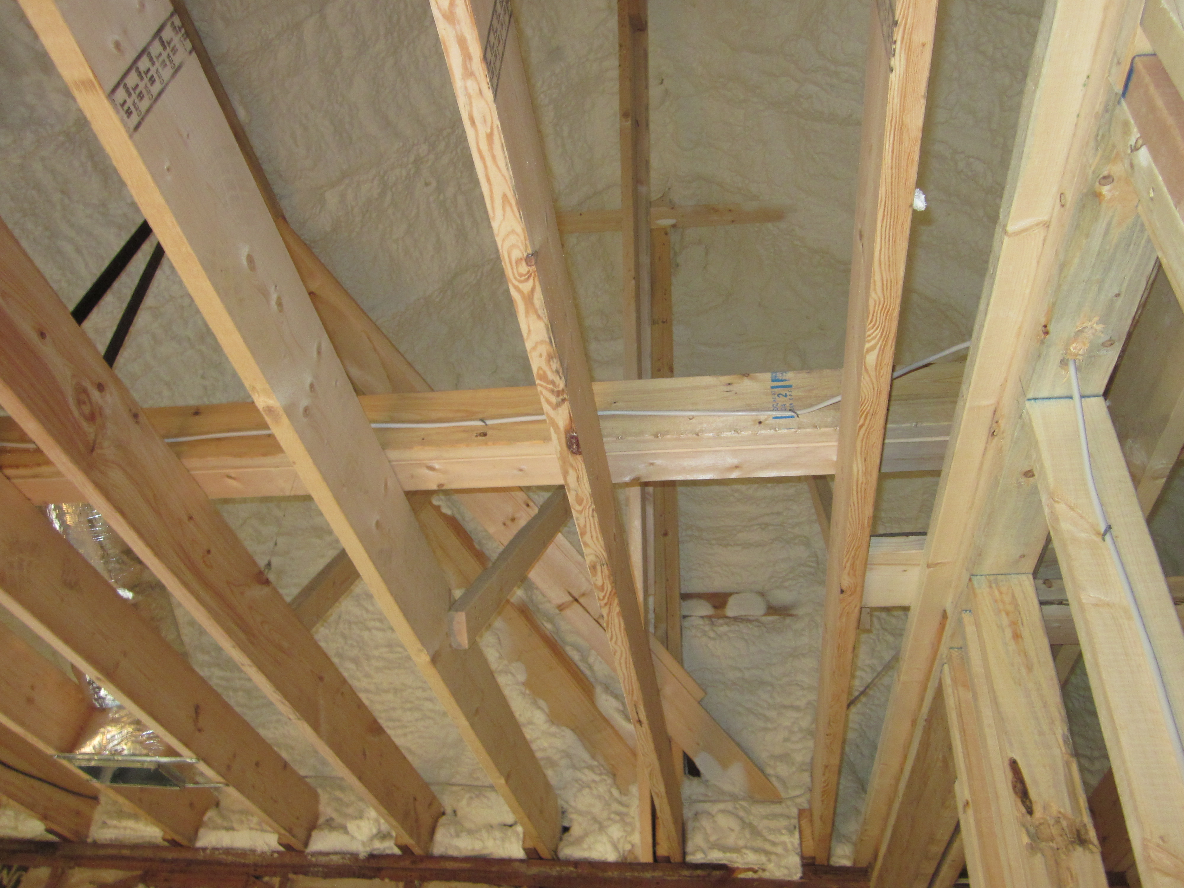 We ended up using open cell on the entire interior of the roofline, batts in the walls as well as in the ceiling of the new basement and in a couple of weeks he’ll be back to finish spraying closed cell spray foam on the exterior walls of the original basement.