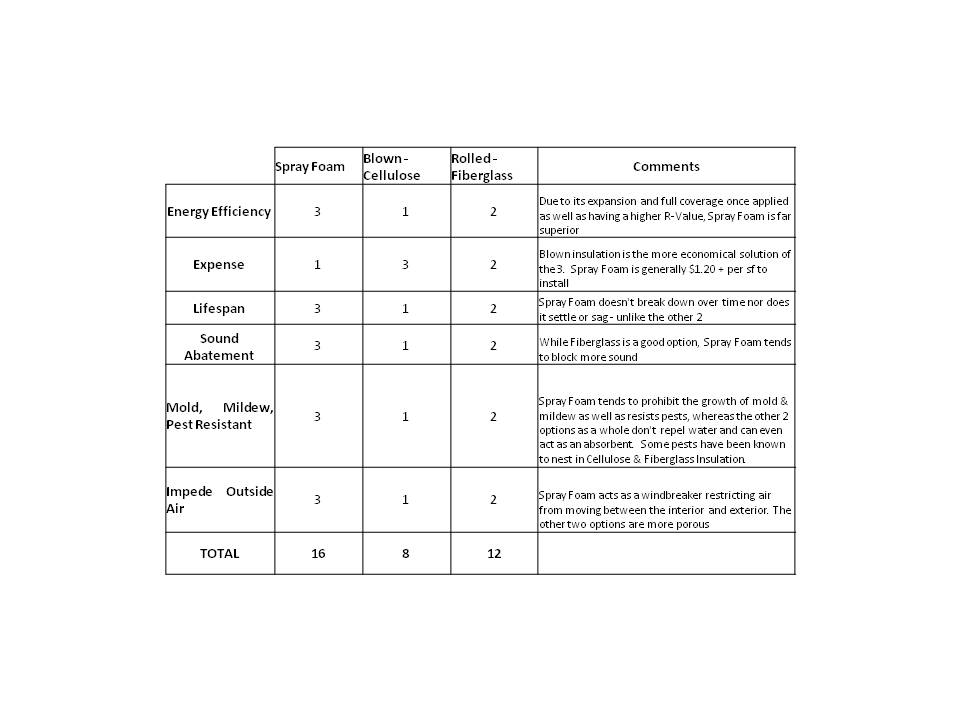 In the end it came down to two companies, both great & highly referred and their pricing was very competitive however we ended up going with Spray Foam Services. Their representative, John Hartsfield not only knew his product but it was his creativity that sold us. Basically after thoroughly evaluating our house, not the simple walk in the door and look around, John came up with a hybrid approach that seemed to make the most sense and also helped to lower the expense.
